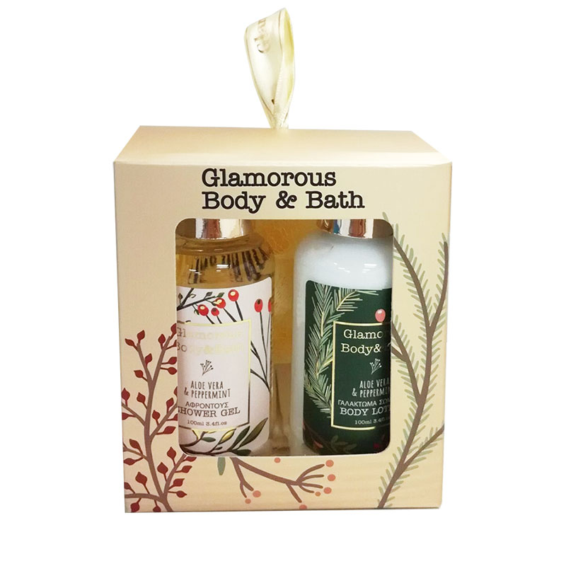 Μοναδικό Σετ Δώρου Glamorous Body & Bath σε κουτάκι με aloe vera και μέντα.